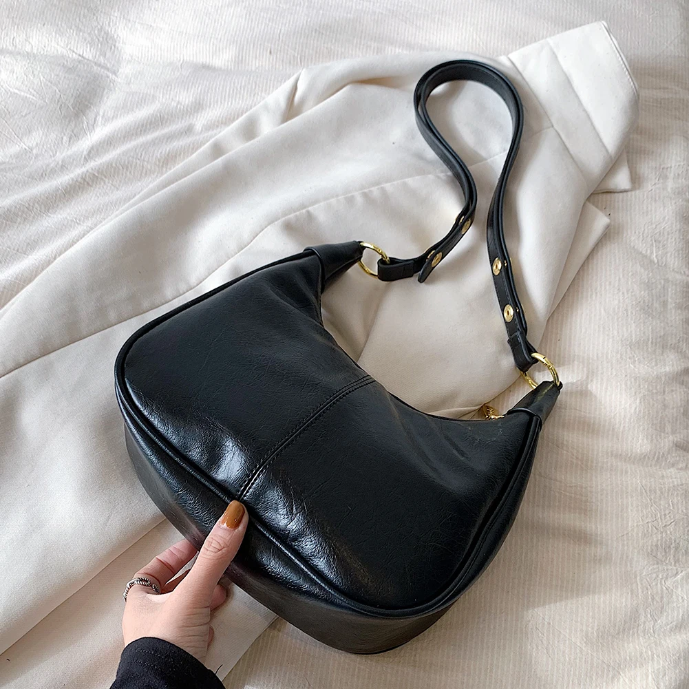 Shoulder Bag for Women Adjustable Strap Crescent Bag PU Leather Solid Crossbody Bag Handbag for Work Travel