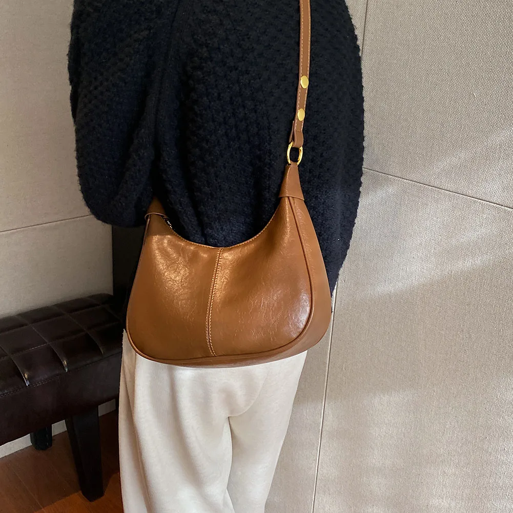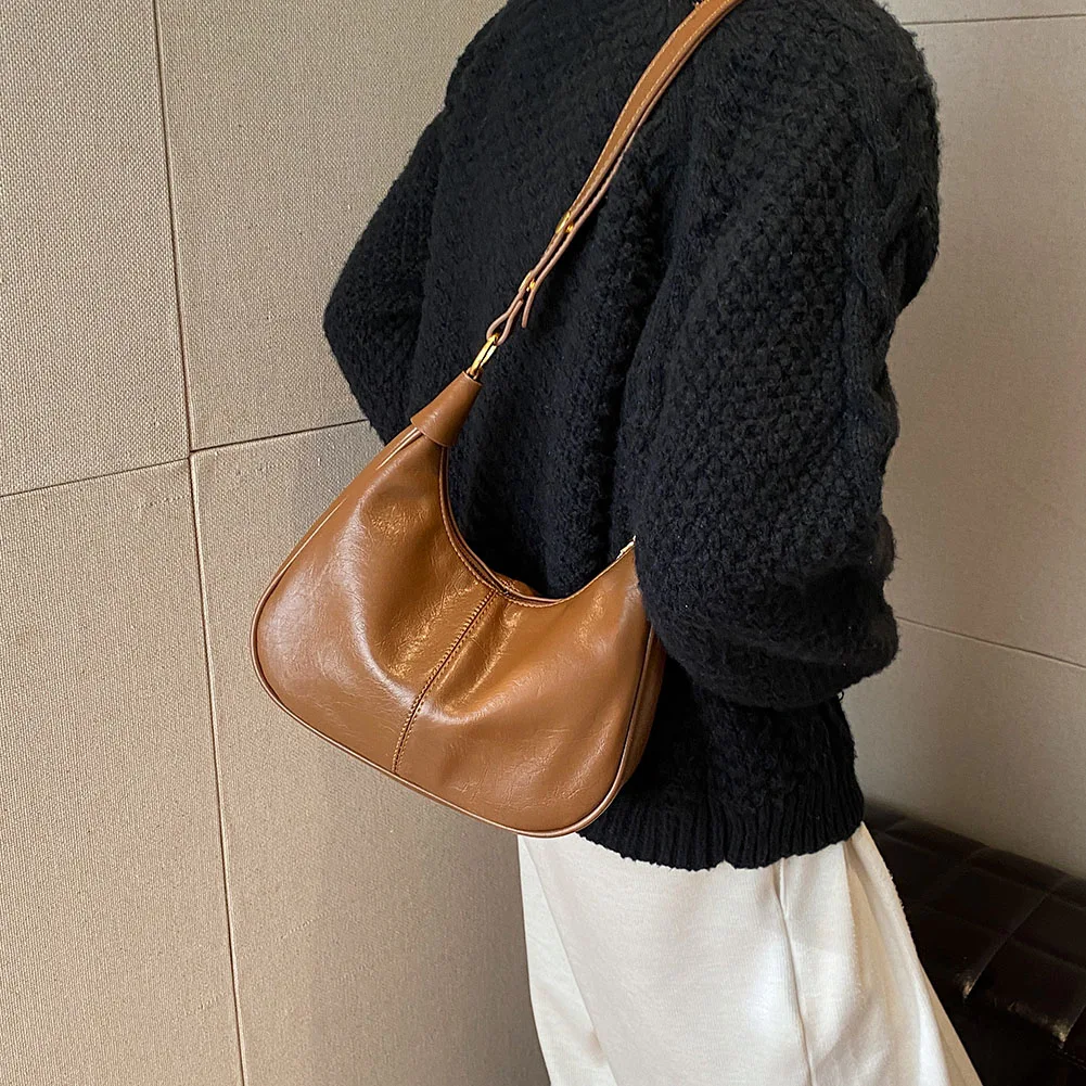 Shoulder Bag for Women Adjustable Strap Crescent Bag PU Leather with Zipper Hobo Bag Solid Handbag for Work Travel