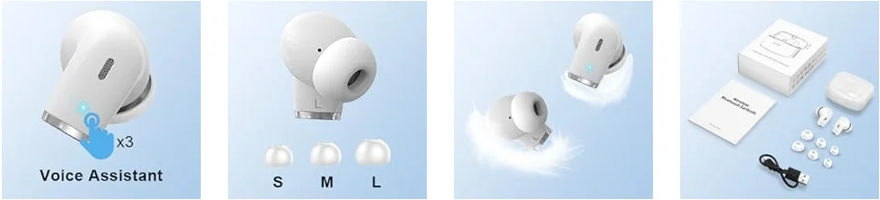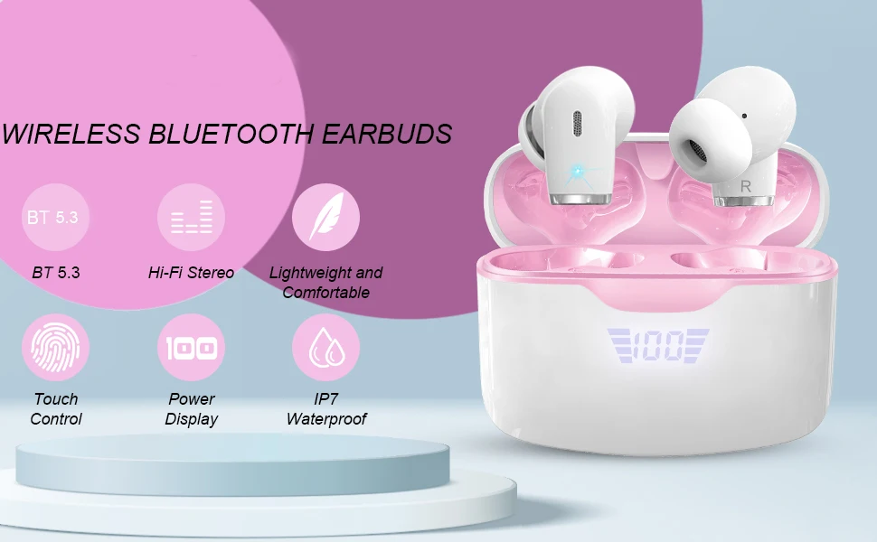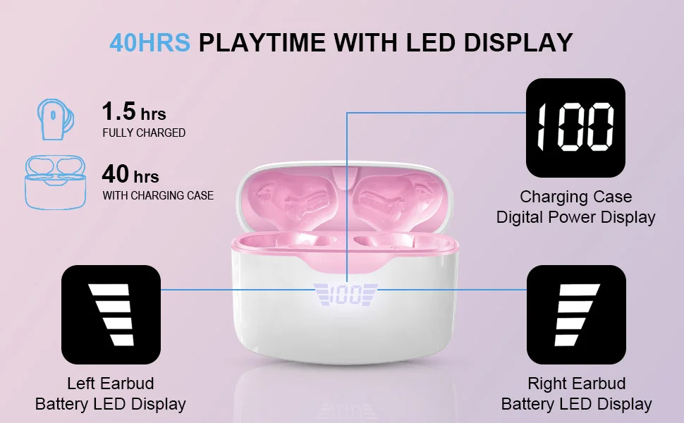 Wireless Earbud, Bluetooth 5.3 Headphones Built in Noise Cancelling Mic, 40H Playtime LED Display Wireless Earphones.