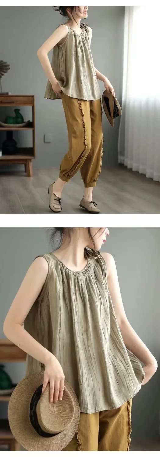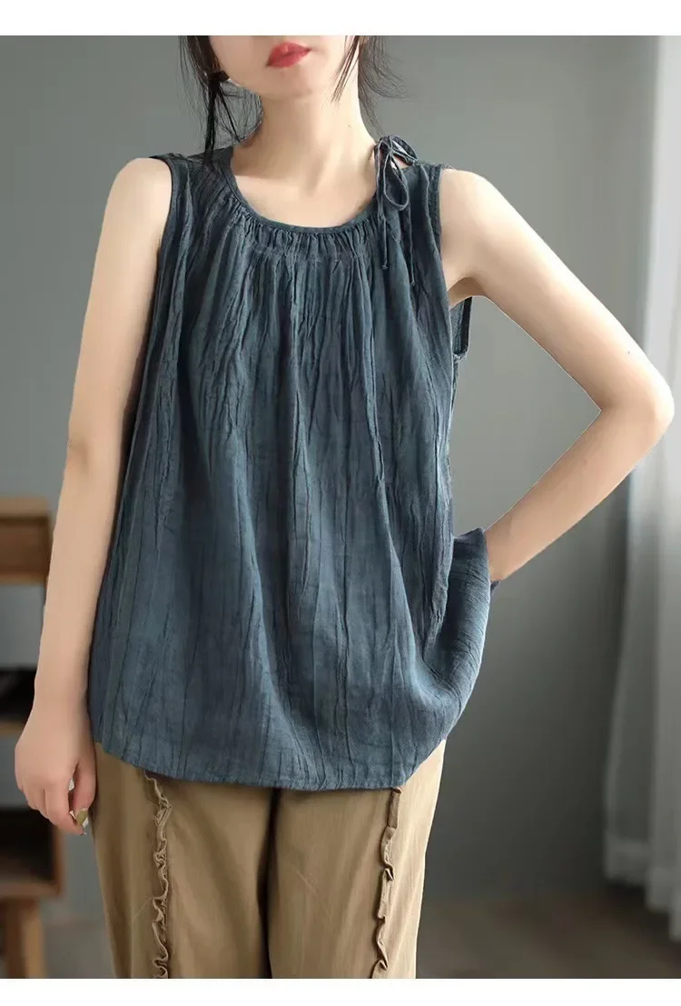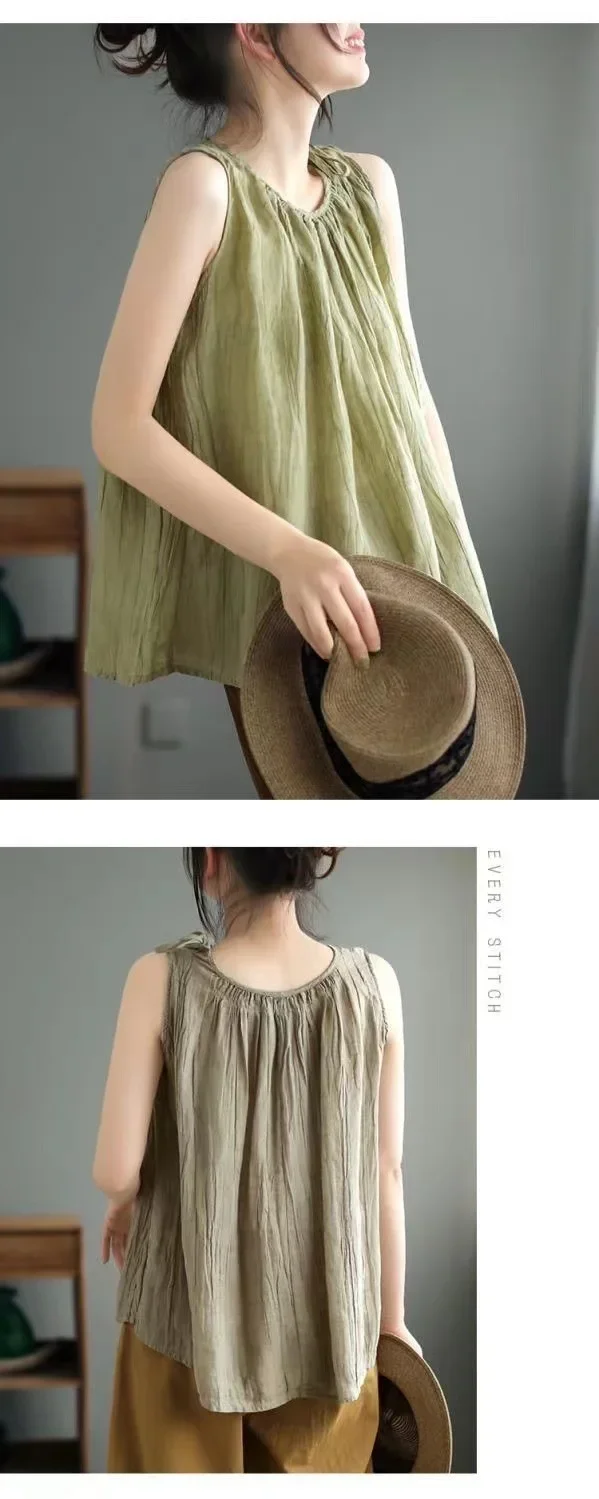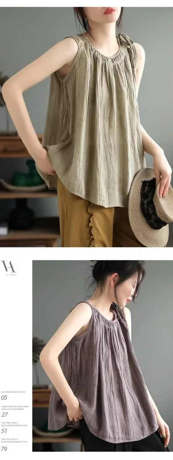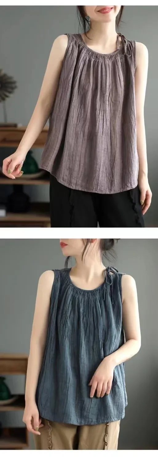 Fashion Solid Thin Cotton Linen Tanks Top Women Camis Blusas Loose Casual Summer Sleeveless Shirt Woman Clothes Camiseta Mujer